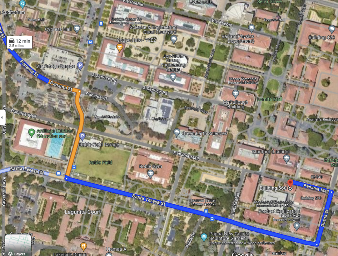 Walking from Palo Alto / traveling by Caltrain: Walk to the Caltrain Palo Alto Station. Once at the station, take the underpass to “Southbound”/ “Buses”/ “University Ave”. From there, you’ll find “University Circle @ Platform South” where the Marguerite Shuttles pick-up/drop-off. Take Line P (Marguerite Shuttle: Line P Schedule) to the Campus Oval stop (Line P only serves University Circle and Campus Oval, so there’s no way to miss your stop!). From the Campus Oval stop, you’ll proceed on a beautiful, 10-minute walk towards the Memorial Church and our building is just behind the church. The building has many names: Peterson Laboratory, Building 550, d.school.